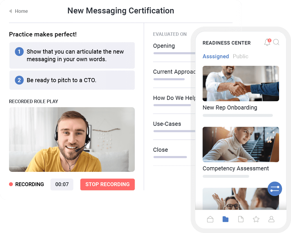Align content and revenue with our integrated sales readiness platform. Add and access your team’s content, collaborate and share together, and track your content in the funnel.